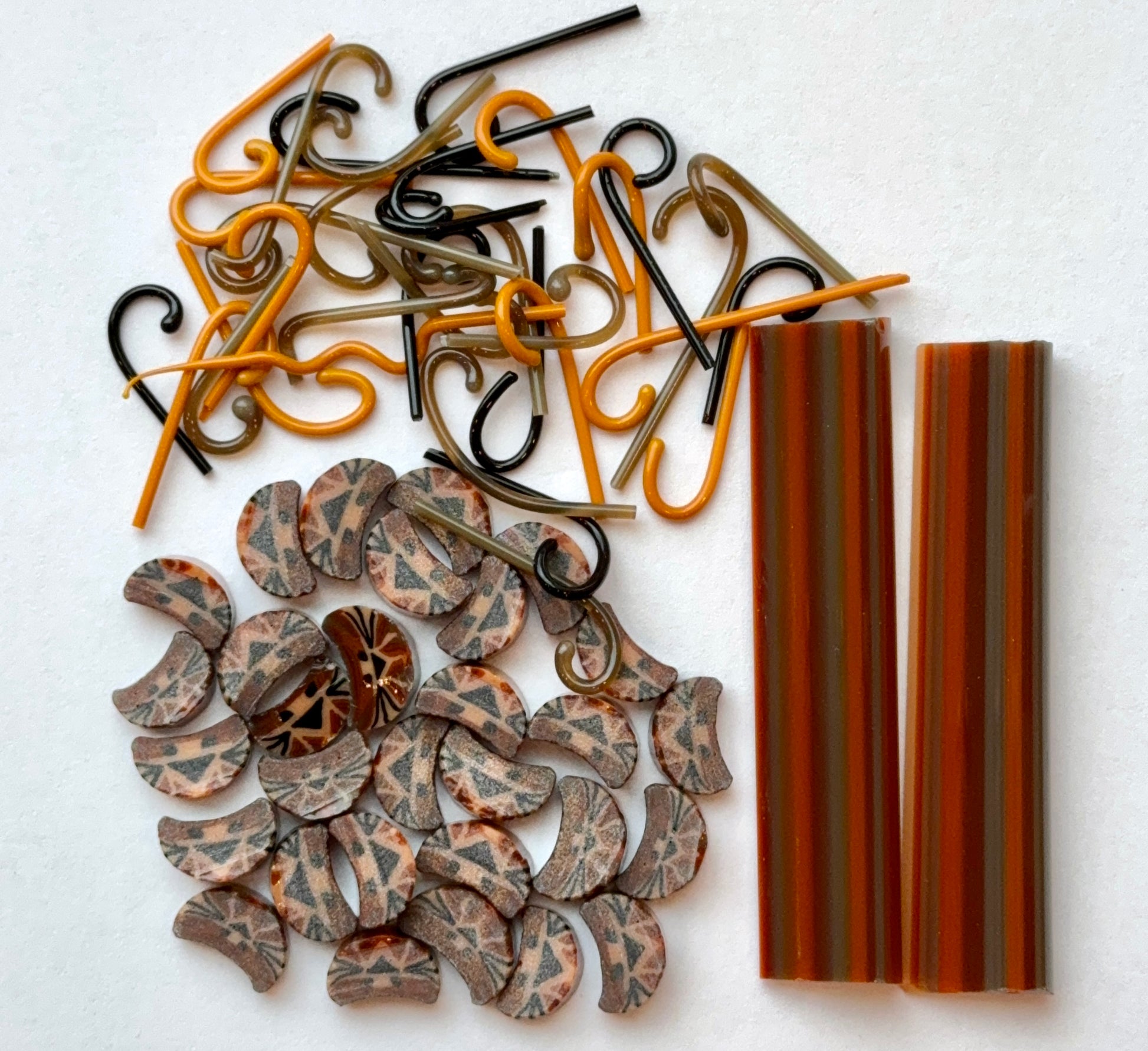 Murrini with an outer shape (leaf, heart, ripple petal, etc.,) will require a TACK FUSE to retain that shape during the fusing process.