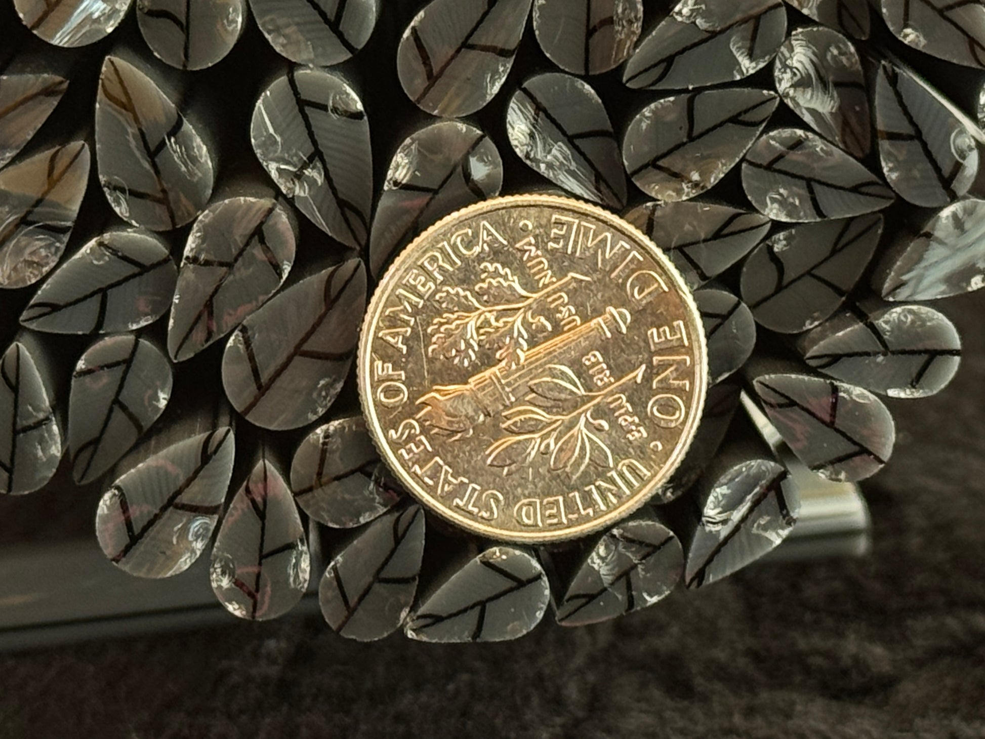 Charcoal Grey Leaves, 1oz, COE 96 Murrini Millefiori