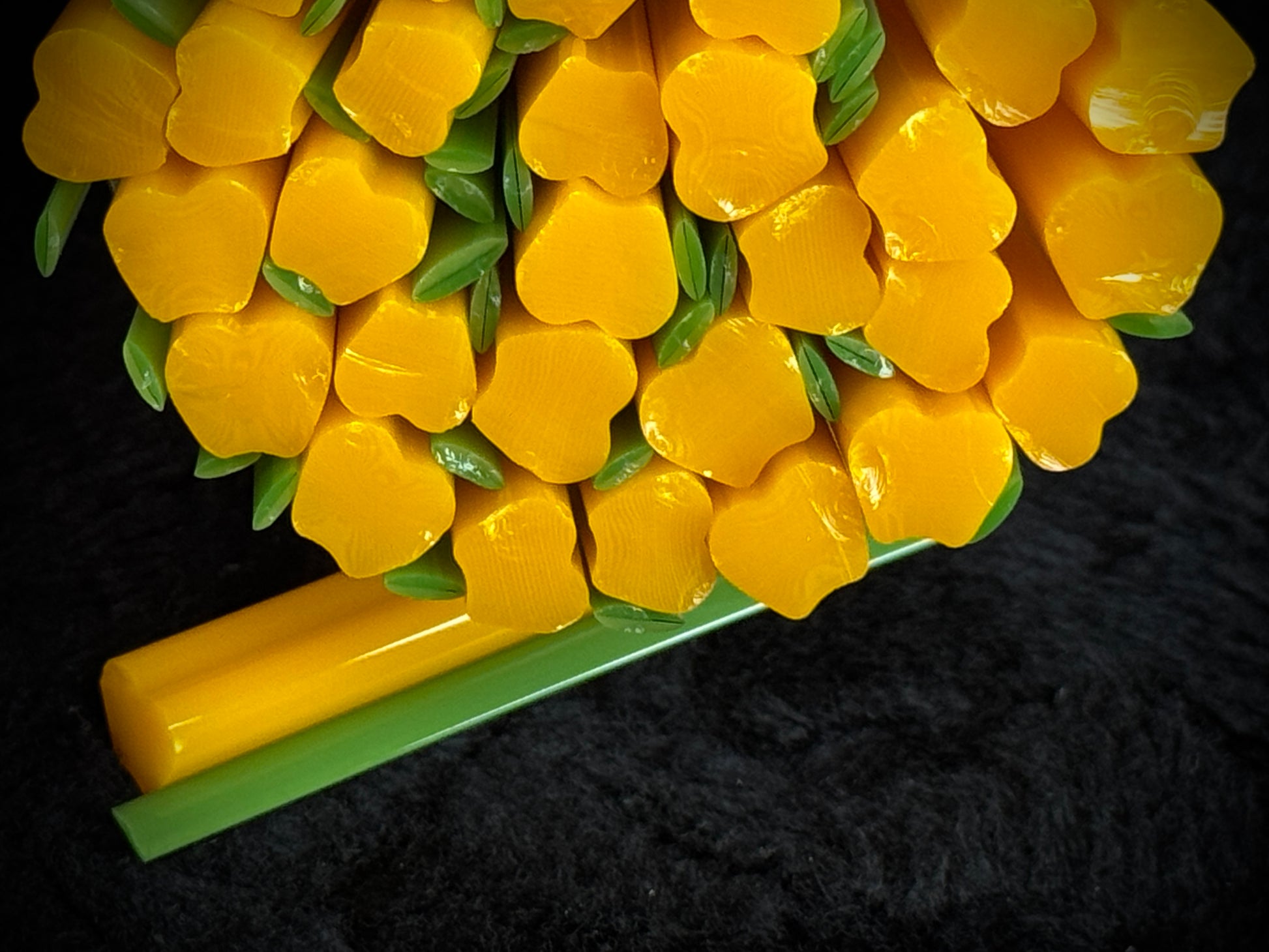 This listing is for 1+ ounce. There will be equal amounts of apples and leaves. Once received, the 2-inch long canes can be snipped as thick or thin as you’d like. If snipped into 3mm chips, you will get approximately 15 pieces per cane. Tack fused they will remain as-is in appearance, however a full fuse will cause them to round out. A test tiles are recommended to confirm results from temperatures in your kiln.