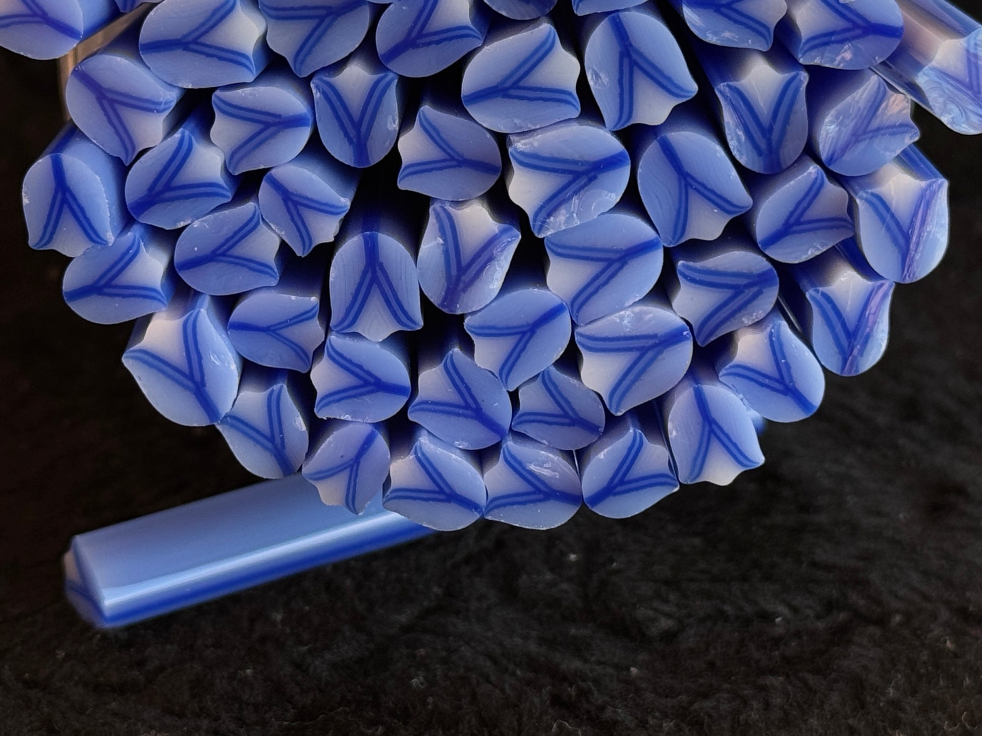 This listing is for 1oz, which is approximately 6-7 two inch long pieces of cane. Once received, the cane can be snipped as thick or thin as you’d like. These look best thinly snipped and lightly tack fused.