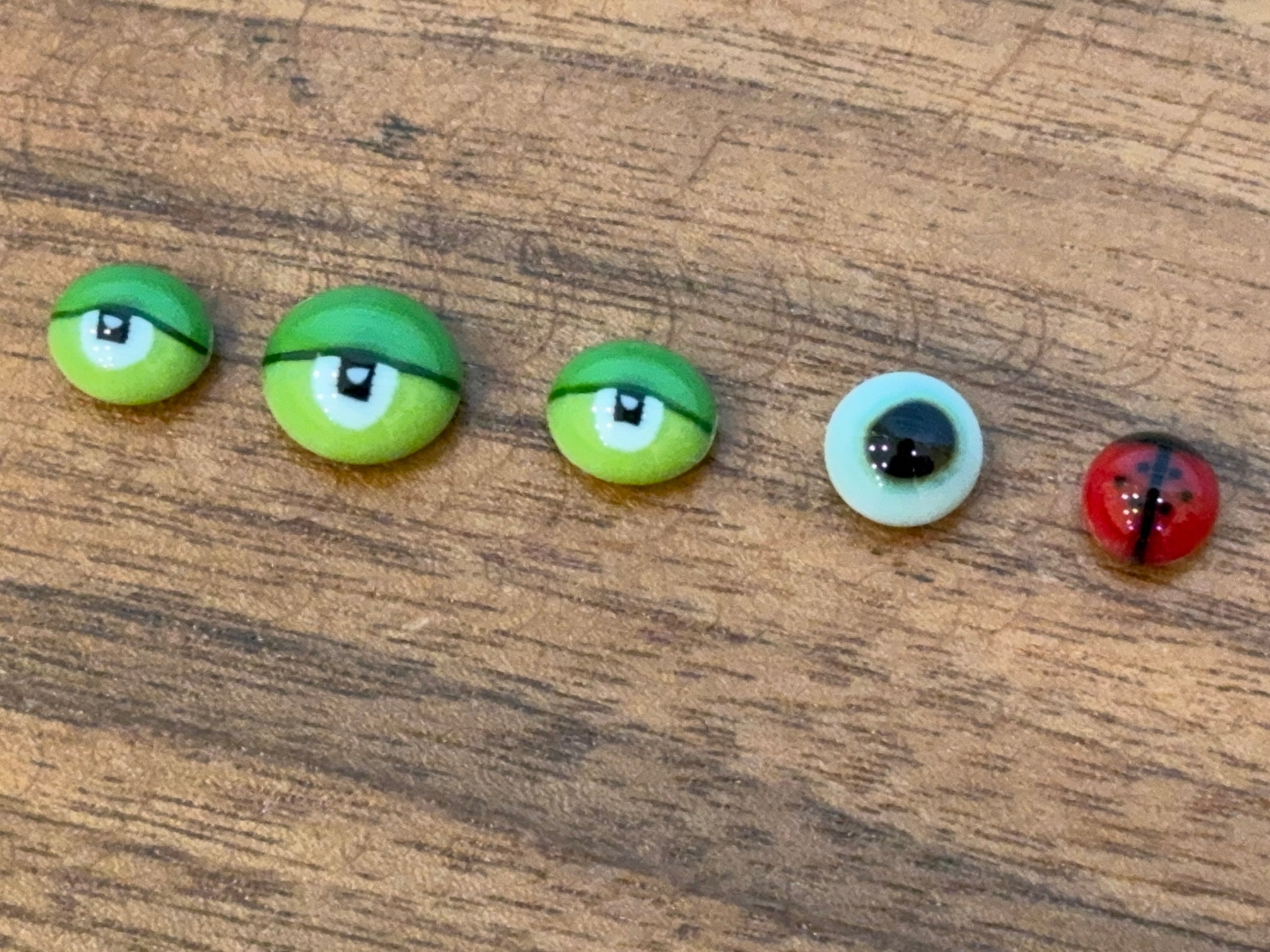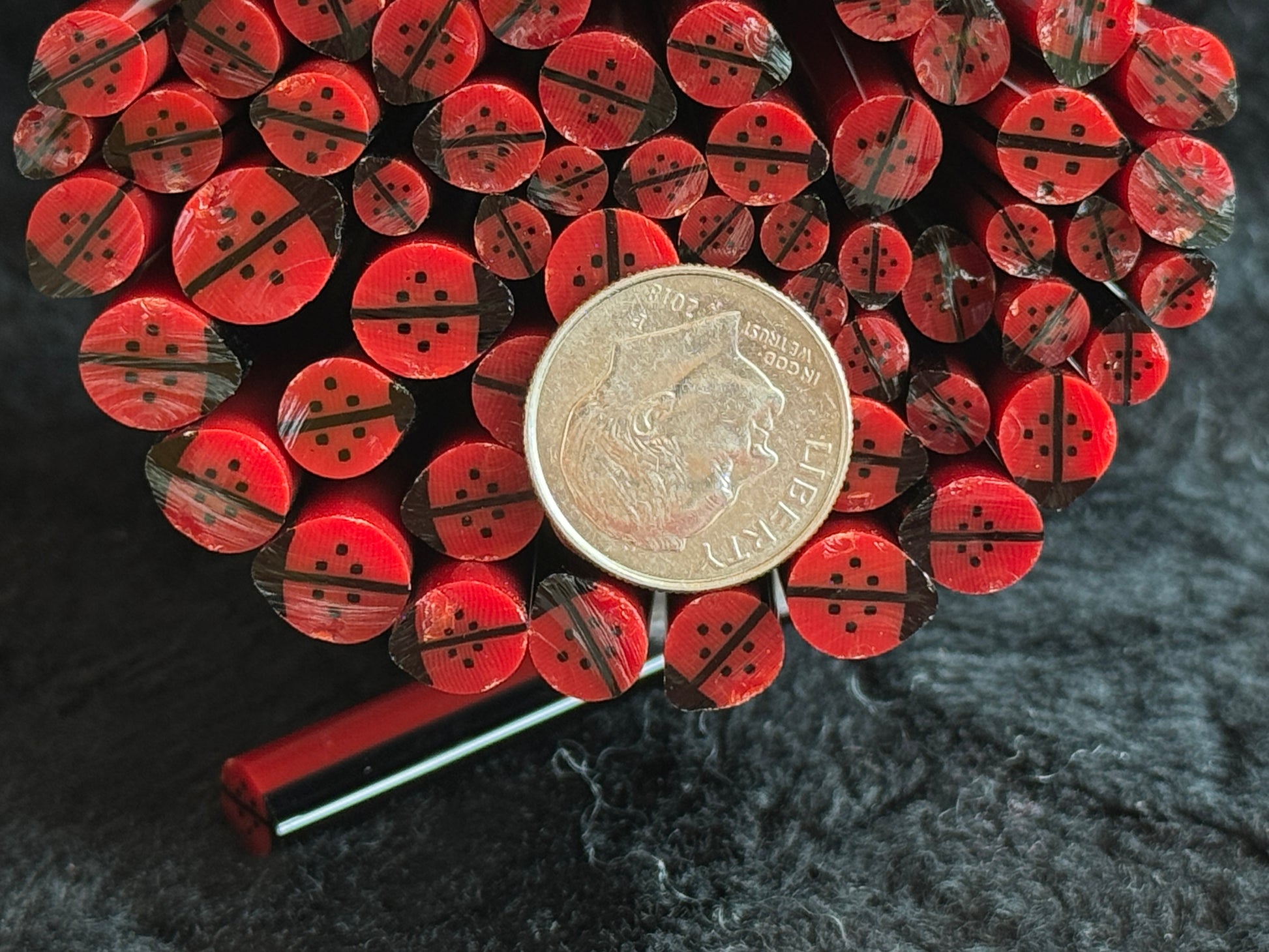 This is a remake of my little ladybugs. Sizes will range from Larger to Tinier. They are best at a light tack fuse. My Murrini are hand-pulled by me in my glass shop’s vitrigraph kiln, annealed and tested. See dime for size reference as sizes will vary in the order.
