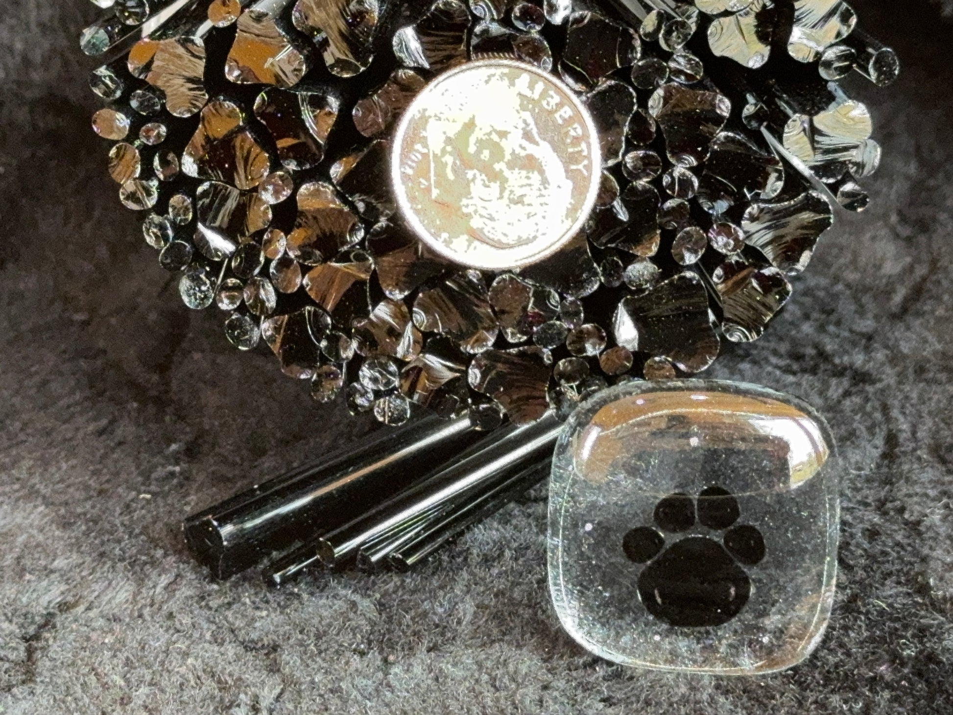 Years ago I attempted a paw inside clear, but I didn't care for the clear outer glass. So wanting to try this again, I made paws as separate pieces that can be tack fused or fully fused! Each package will have paw "pads" and "toes". There will be 4 Toe canes to 1 Pad cane. Each kit should make approximately 64 paws.