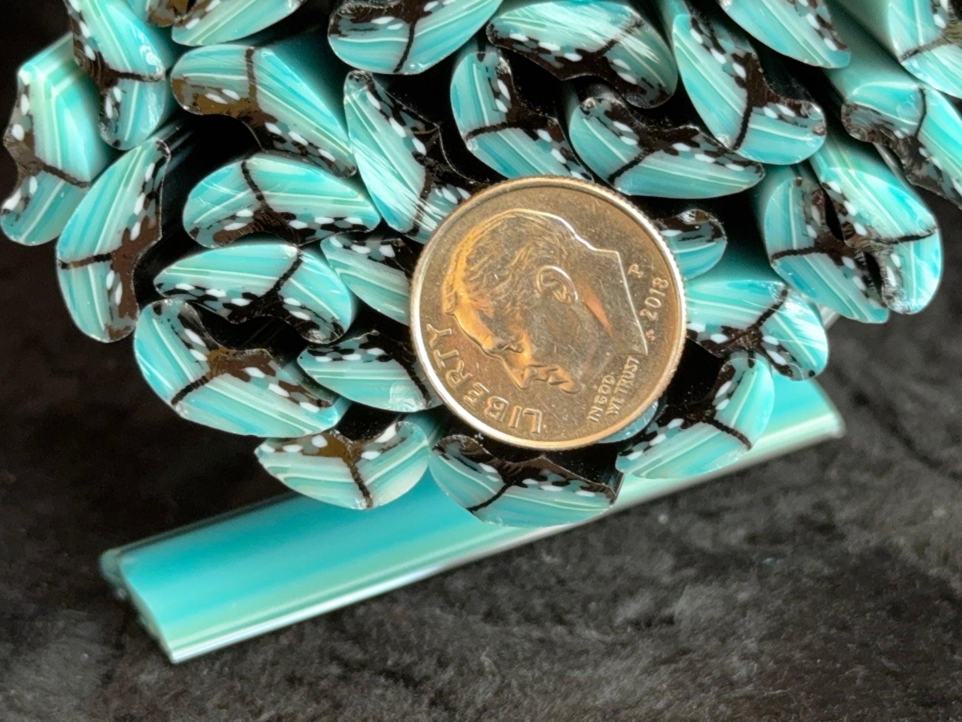 My listings are photographed in the best lighting possible to show accurate colors (however all computer monitors render colors differently). My murrini are created with Oceanside’s fusible COE 96 glass unless otherwise specified in the listing.