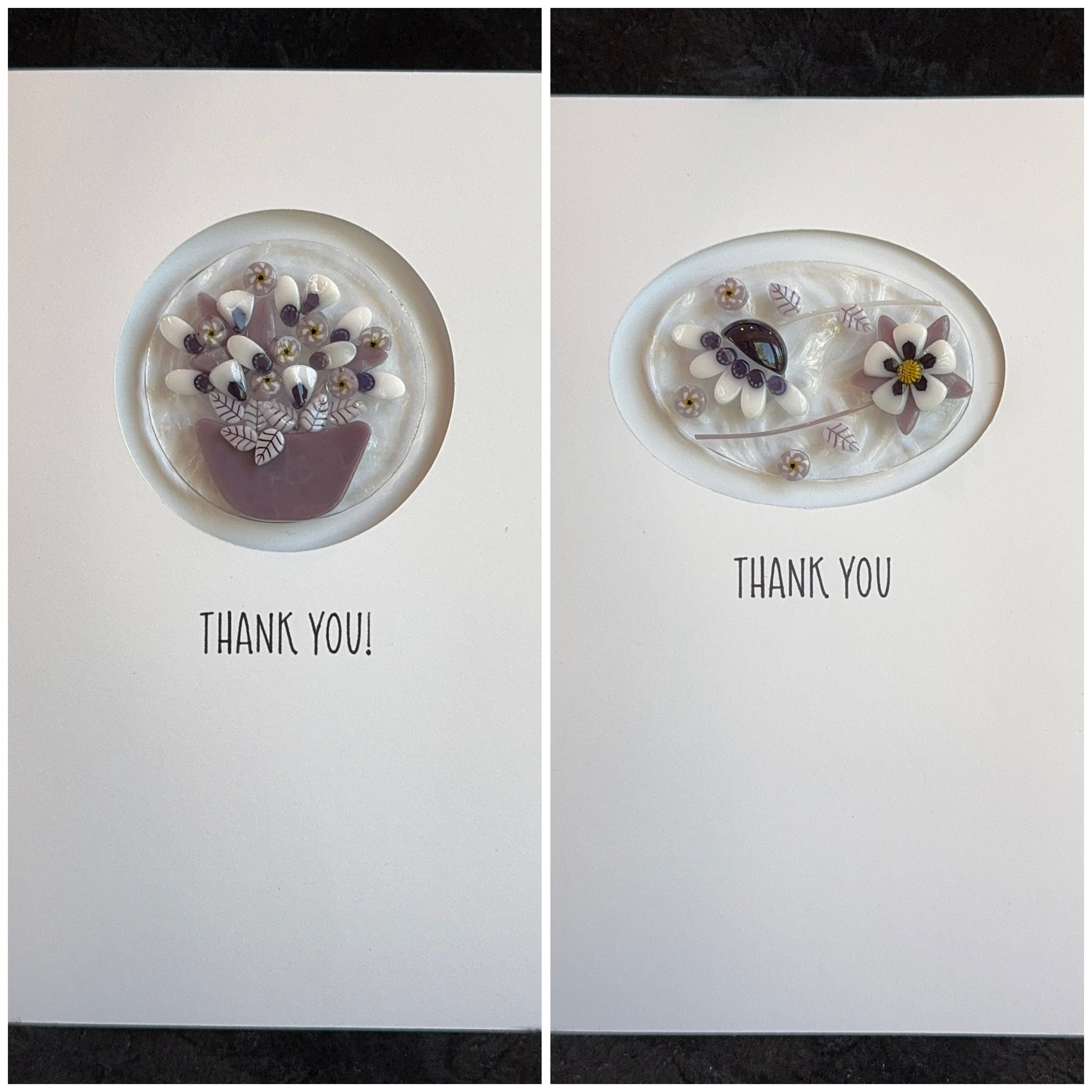 Sizes may vary slightly on these beautiful leaves that were created with White opal and Grape transparent glass. They are best at a light tack fuse and were hand-pulled by me in my glass shop’s vitrigraph kiln, annealed and tested.